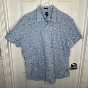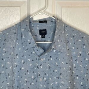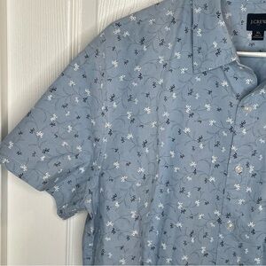 J. Crew Slim Fit Short Sleeve Floral Print Chambray Shirt XL