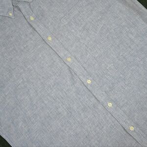 FEATURES- Soft, breathable linen\cotton blend material, full button front, buttoned collar, short leeves, blended breast pocket, round hem