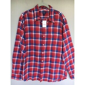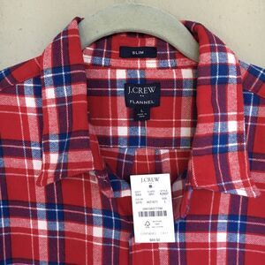 J Crew Slim Flannel Shirt Men L Red Plaid Button Up 100% Cotton Preppy Casual