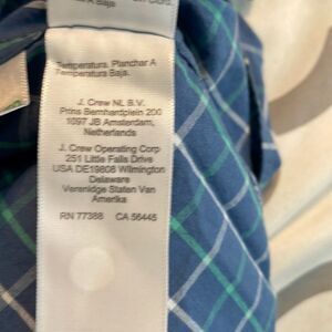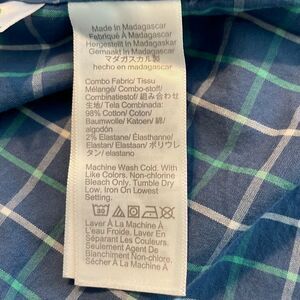 J. Crew Slim Flex Washed Plaid Button Down Shirt Blue Green White Long Sleeve L