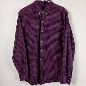 J Crew Slim Oxford Shirt Check Mens L Red Blue Preppy Ivy League Classic
