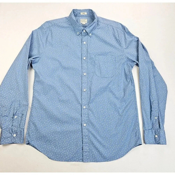 J. Crew Slim Stretch Size Large Men's Blue White Floral Button Down Long Sleeve