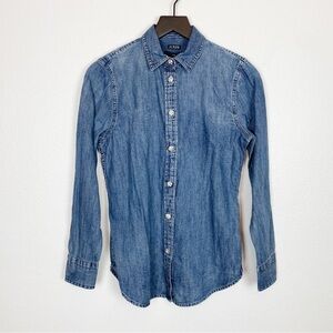 J. Crew Slim-Fit Chambray Shirt Jewel Buttons BW194