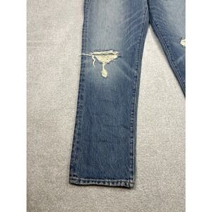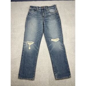 J Crew Slouchy Boyfriend Jeans Medium Blue Distressed Ripped Knees Size 26