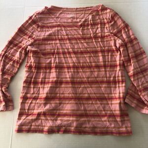 J Crew Slub Tee Knit Goods Pink Orange Stripe 3/4 Sleeve Top Sz M A22