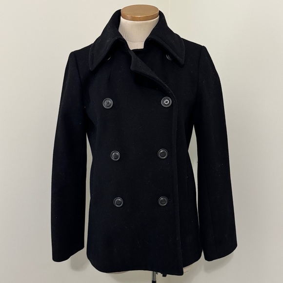 J Crew Small Black Melvin Wool Blend Pea Coat Peacoat Classic Preppy Vintage Y2K