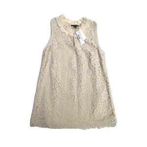 J. Crew Small Tall Cream Ivory Beige Lace Ruffle Neck Sleeveless Keyhole Top New