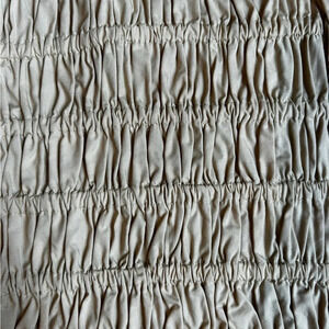 JCrew smocked tank. Nude/Tan/Beige color. Small. Straps have buttons so they are slightly adjustable and can be worn straight or crisscrossed. There is a silicone piece around the top to help hold it up.
