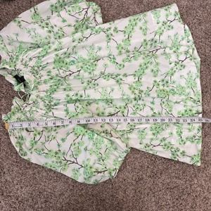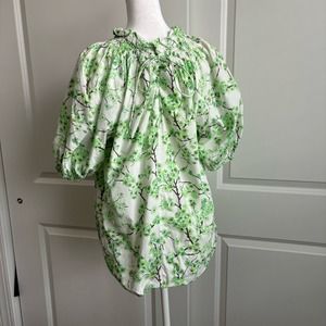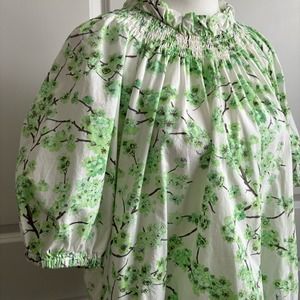 J Crew Smocked Neck Puff-Sleeve Top in Lime Cherry Blossoms Sz M