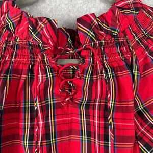 J. Crew Smocked Neck Top Good Tidings Plaid Size M Christmas Tartan Puff Sleeve
