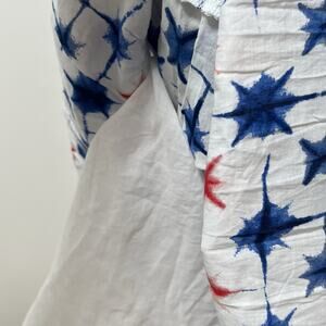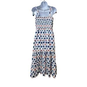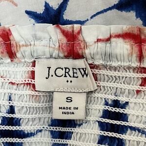 J Crew Smocked Tiered Midi Dress Size S Red White Blue Tie Shoulder Patriotic