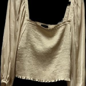 J Crew butter yellow smocked long sleeve top. Top has grippers at shoulders, elastic at sleeve bottoms.