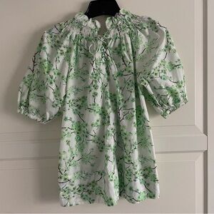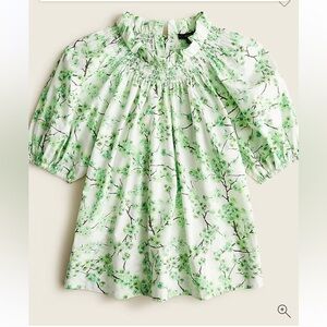 J. Crew Smocked neck puff-sleeve top in lime cherry blossoms 20790