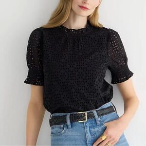 J. Crew Smocked puff sleeve top in eyelet BQ183 White XS