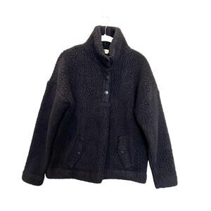 J Crew Snap-Collar Sherpa Sweatshirt in Polartec® Fleece Black Women's S