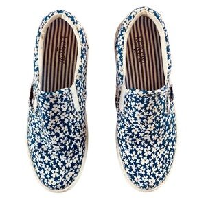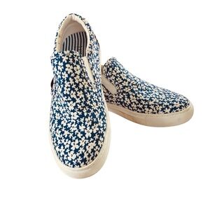J Crew Sneakers Blue/White Keats Floral Printed Road Trip Slip-on (Size 7)