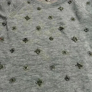J. Crew Snowflake Sweater Charcoal Gray Size: S One small sequin on sweatshirt is a little broken .. please see pic