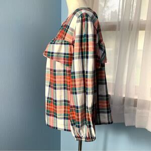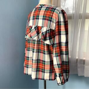J. Crew Snowy Tartan Plaid Ruffle Popover Top Size Medium