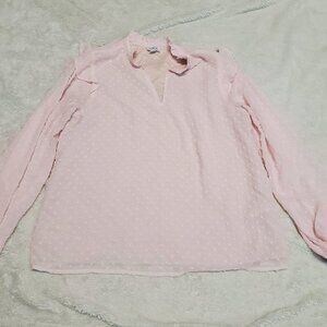 J. Crew Soft Pink Swiss Dot Ruffle Flowy Long Sleeve V Neck Blouse Top Women S
