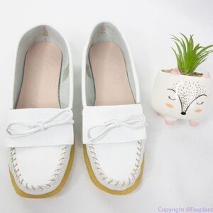 J. Crew Soft unlined leather loafers, size 8, color white, new in box