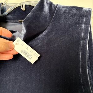 NWT Sleek velvety dark navy mockneck sleeveless blouse. Super soft. Perfect for work or going out. Size large. Never worn!