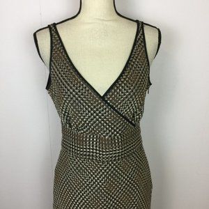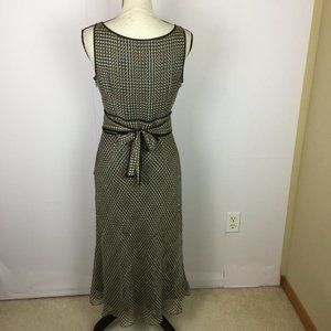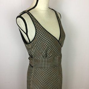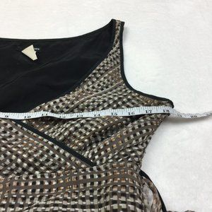 J Crew Sophia Midi Silk Dress Size 10 Womans Black Brown Plaid V-Neck Sleeveless