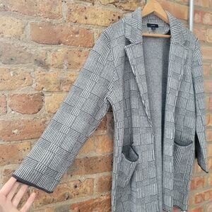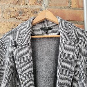 J Crew Sophie Open Front Knit Sweater Blazer Glen Plaid Black Grey Size Medium