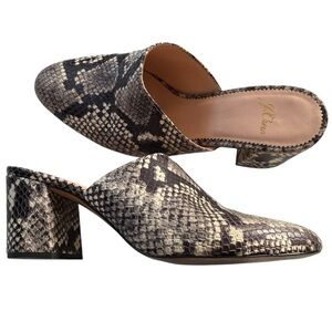 J. Crew Sophie Pump Mule in Greyscale Shine Snake slip on mid block heel 7.5