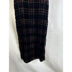 Winter or fall formal event dress, grunge with boots, or just a comfy velvet dress to wear for a dinner, presentation, etc. A little preppy, dark academia. Plaid pattern is red, blue, yellow, and black.