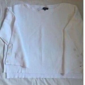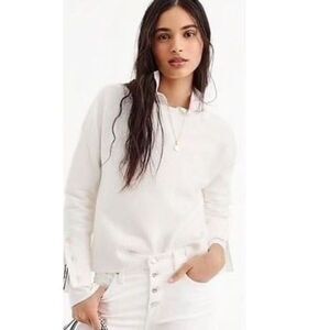 J Crew White Cotton Split Hem Button Sleeve Crewneck Sweater No Longer Available On Website Looser Fit Hits At Hips Never Worn Size XXL