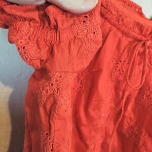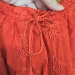 J Crew Square Neck Top Embroidered Eyelet Brilliant Sunset Women's Size X-Large
