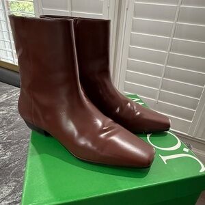 J Crew Square Toe Ankle Boots in Spazzolato Leather in Burnished Sienna. size 8.
