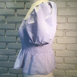 J. Crew Square-neck Smocked Gingham Crop Top M