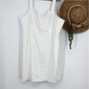 J Crew Squareneck White A-Line Dress in Stretch Linen Blend Knee Length