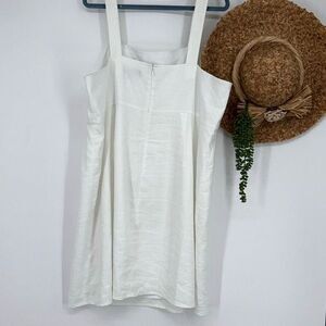 J Crew Squareneck White A-Line Dress in Stretch Linen Blend Knee Length 20