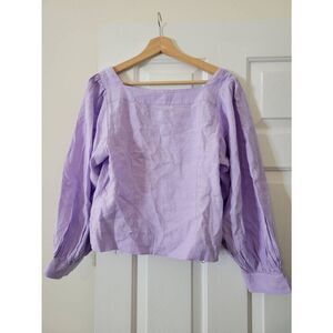 J. Crew Squareneck button-up top in linen, Purple M NWT $98