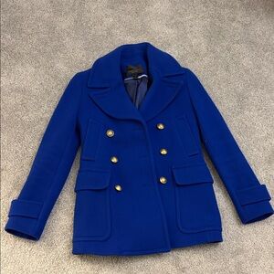 J. Crew Stadium Cloth by Nello Gori royal blue wool cocoon coat, size 0. Very Good condition, features gold hardware & two exterior pockets. One of J. Crews best-selling, customer-favorite coats since 2011, the cozy cocoon silhouette is made from exclusive stadium-cloth wool, created especially by Italy's Nello Gori mill (inspired by old-school stadium blankets, it adds warmth without bulk). This cocoon coat will keep you warm through even the chilliest winter weather.