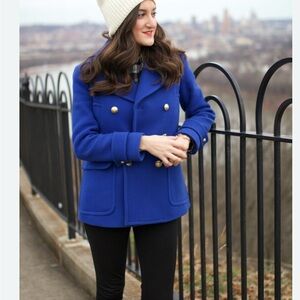 J Crew Stadium Cloth Nello Gori Pea Coat Cobalt Blue Lined Wool Blend