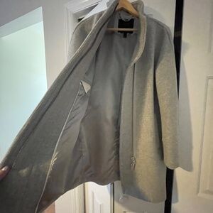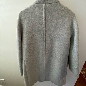 Color: Heather Grey. Size:6 Boxy fit. Hits at mid-thigh. Italian wool/nylon by Nello Gori. Zip closure. Pockets. Lined. Item B2770. Rare Holiday 2014 edition. 79% wool, 21% nylon. 100% polyester lining. Dry clean only.