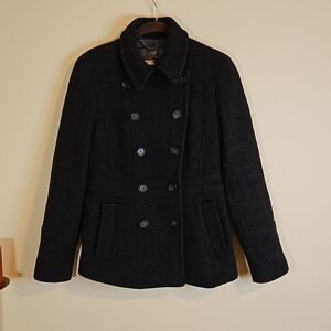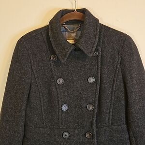 J Crew Stadium Cloth Nello Gori gray Peacoat, 2 front pockets, wool blend, fully lined, size 2. Excellent pre loved condition, measurements in pics, smoke free home, ships next day. Bundle and Save!
