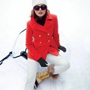 J. Crew Stadium Cloth Peacoat Women 6 Orange Italian Double Breast Gold Buttons