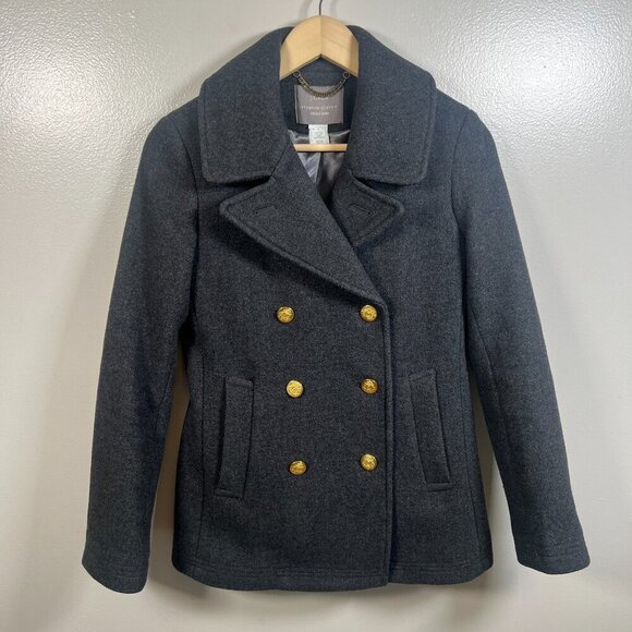 J. Crew Stadium Cloth Wool Pea Coat Size 2 Gray Nello Gori Double Breasted