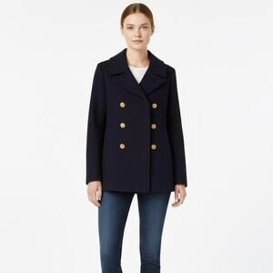 J Crew Stadium Cloth Wool Peacoat Women’s 2 Navy Gold Button Jacket