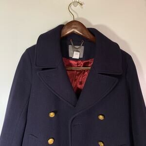 This J. Crew Stadium Cloth by Nello Gori wool peacoat is a luxurious, timeless outerwear staple. Made from premium Italian wool, it features a flattering tailored cut, double-breasted gold button closure, structured lapel collar, side-entry welt pockets, and a rich satin lining. Perfect for holiday dressing, workwear, or elevating winter wardrobe essentials.