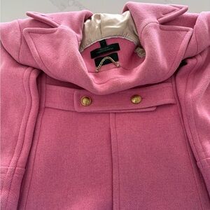 Chic pink pea coat by J. Crew. Features stylish gold buttons. Perfect for adding elegance to your outfit. Has a few spots as pictured that would likely come out with dry cleaning.