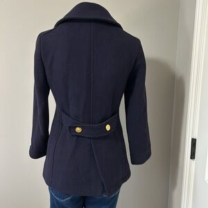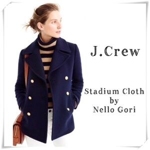J Crew Stadium Cloth by Nello Gori Wool Blend Classic Pea Coat Navy Blue Sz 0