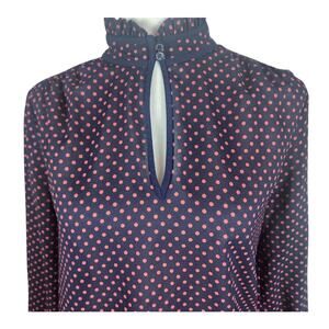 J. Crew Stand Up Ruffle Collar Polka Dot Blue Blouse Women's Size 2