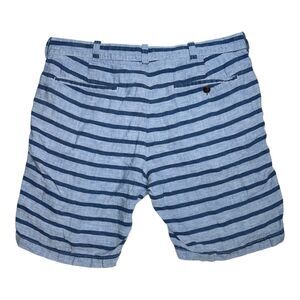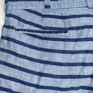 J Crew Stanton Shorts Mens 35 Baird McNutt Irish Linen Blue Stripe Beach Preppy
