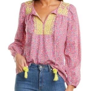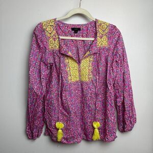 J. Crew Starina Block Print with Yellow Embroidery Top Sz. XS