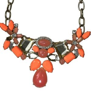 J Crew Statement Bib Necklace Orange Coral Gold Tone Rhinestone Stone